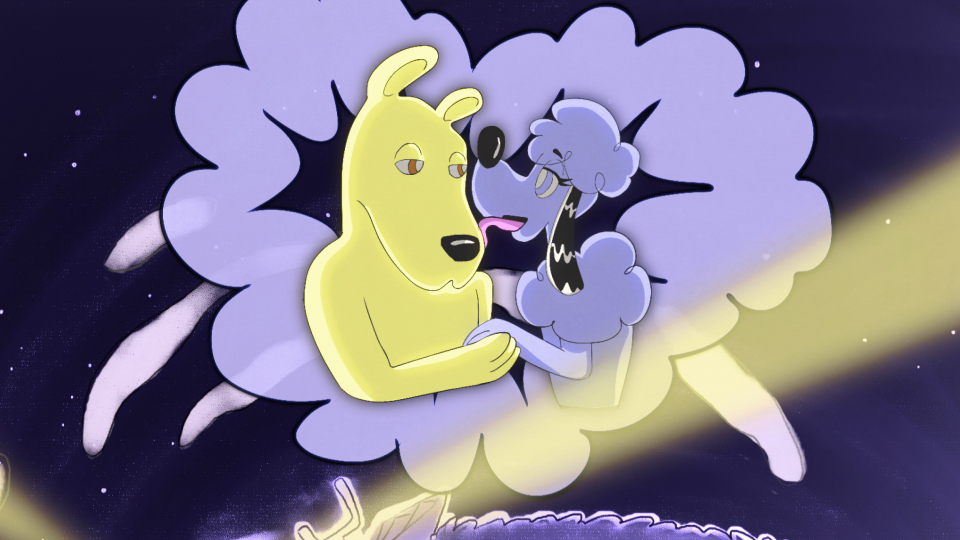 A purple dog who can’t escape her misery recieves a phone call that overwhelms her with her past.